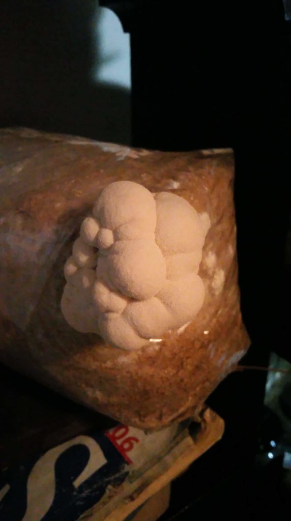 Les primordiums (bébé champignon) sont faciles à voir lorsque vous savez de quoi ils ont l’air. Ce ne sont pas tous les primordiums qui se développeront, certains d’entre eux vont s’arrêter au début. Mais à ce stade si ça sera facile de cibler les primordiums saints qui éventuellement deviendront des champignons (sporophore « porte-spores’) en bonne et due forme.